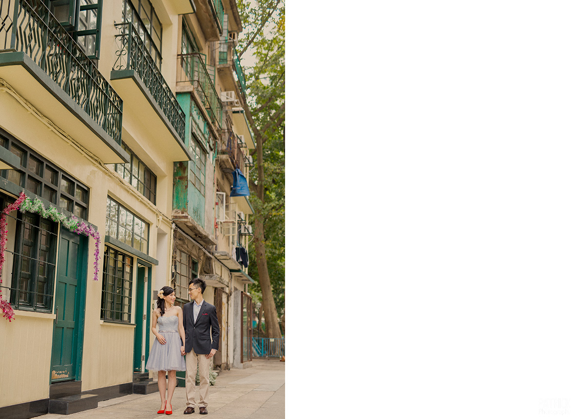 Stephanie and Jason live and work in the UK, and they plan to have a lovely summer wedding there this year. However, they decided to come back to Hong Kong to take some engagement photographs, and I’m glad they discovered me through their friend’s recommendation and after looking at my work on my website. After a few emails, we confirmed the time and finally came the day of the shoot. Since they want to leave the wedding gown for their wedding this summer, Stephanie decided to wear a lovely cocktail dress and a gorgeous red qipao for the shoot.