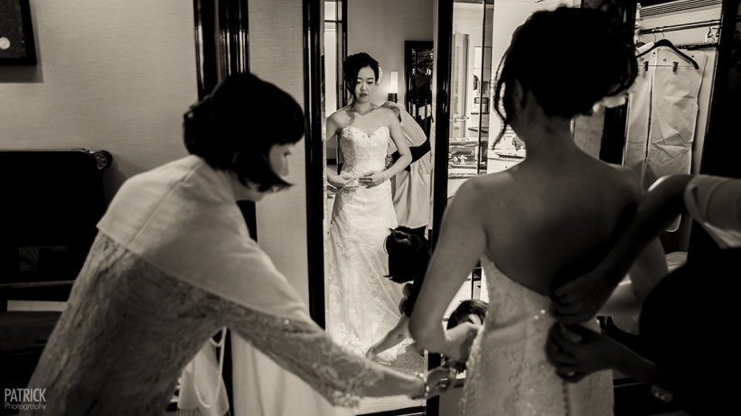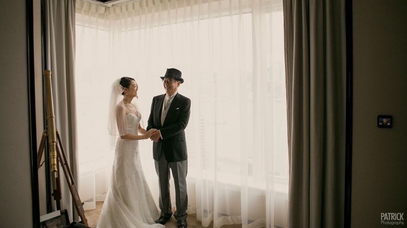 Miho and Kelvin’s wedding ceremony took place at the Peninsula and the afternoon section was mainly focused on the preparations, for example the bride getting her make up done in the room and taking pictures with her family. As I have previously mentioned, I always believe that wedding photographers shouldn’t spend too much time taking different portraits of the couples as that can be done at the pre-wedding session, and the wedding day photos should be focused more on the interactions between the guests and the newlyweds. To me, it is more important to capture these once in a lifetime moments on film rather than staging them.