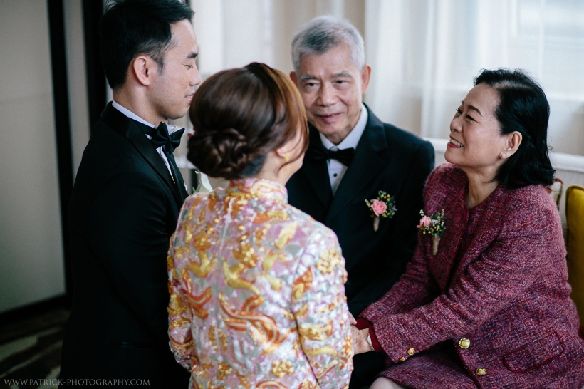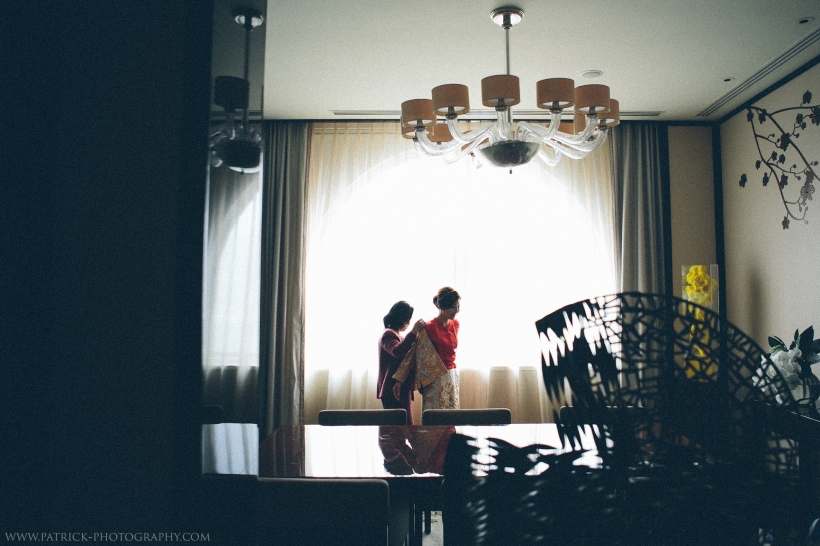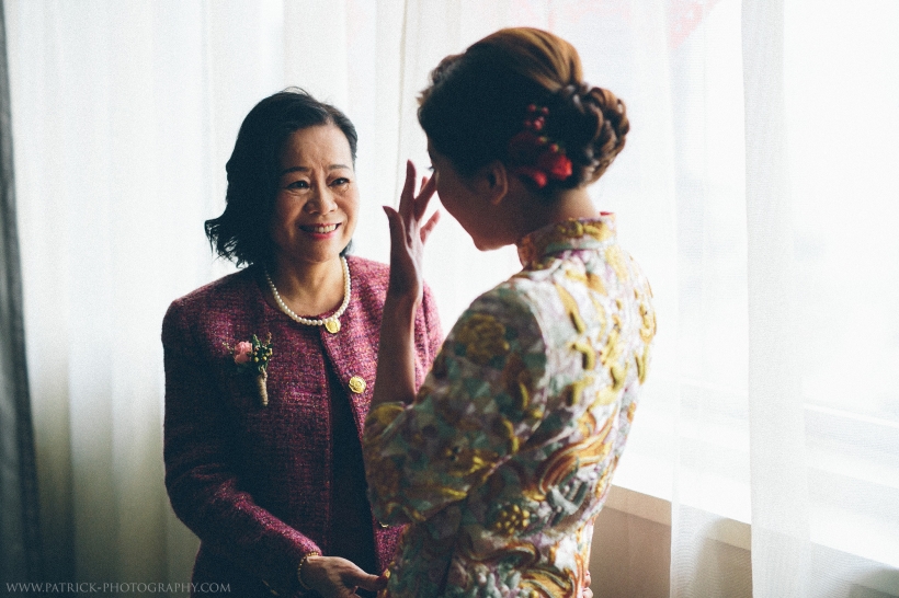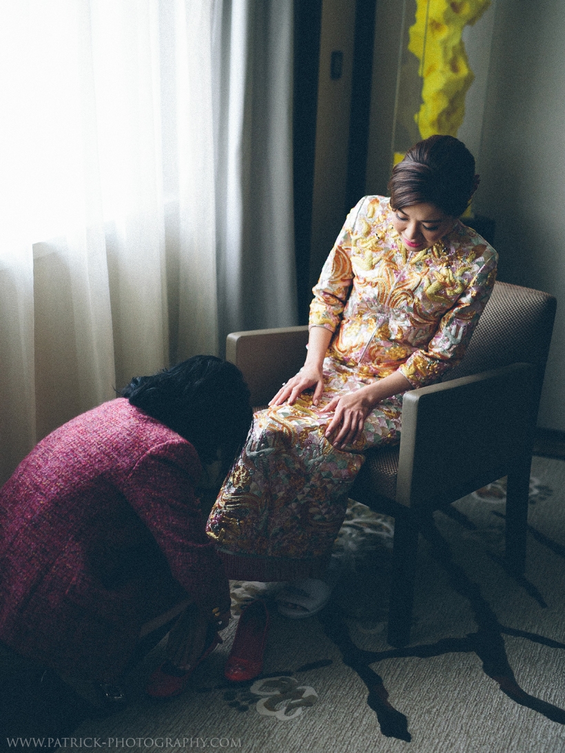 Be it a tiny gesture like the couple holding hands, a loving gaze into each other’s eyes between mother and daughter, the bridesmaids adjusting the red flower in the bride’s elaborate hairdo, a whisper into the bride’s ear by the groom; these are the moments I like to capture with my camera the most. They can tell a lot about the interactions among family members and friends, and the intimate relationship of the couple. I was especially touched when Phoebe’s mother knelt down to put on the shoes for Phoebe, reminiscent of one of the earliest childhood memories every daughter shares with her mother.