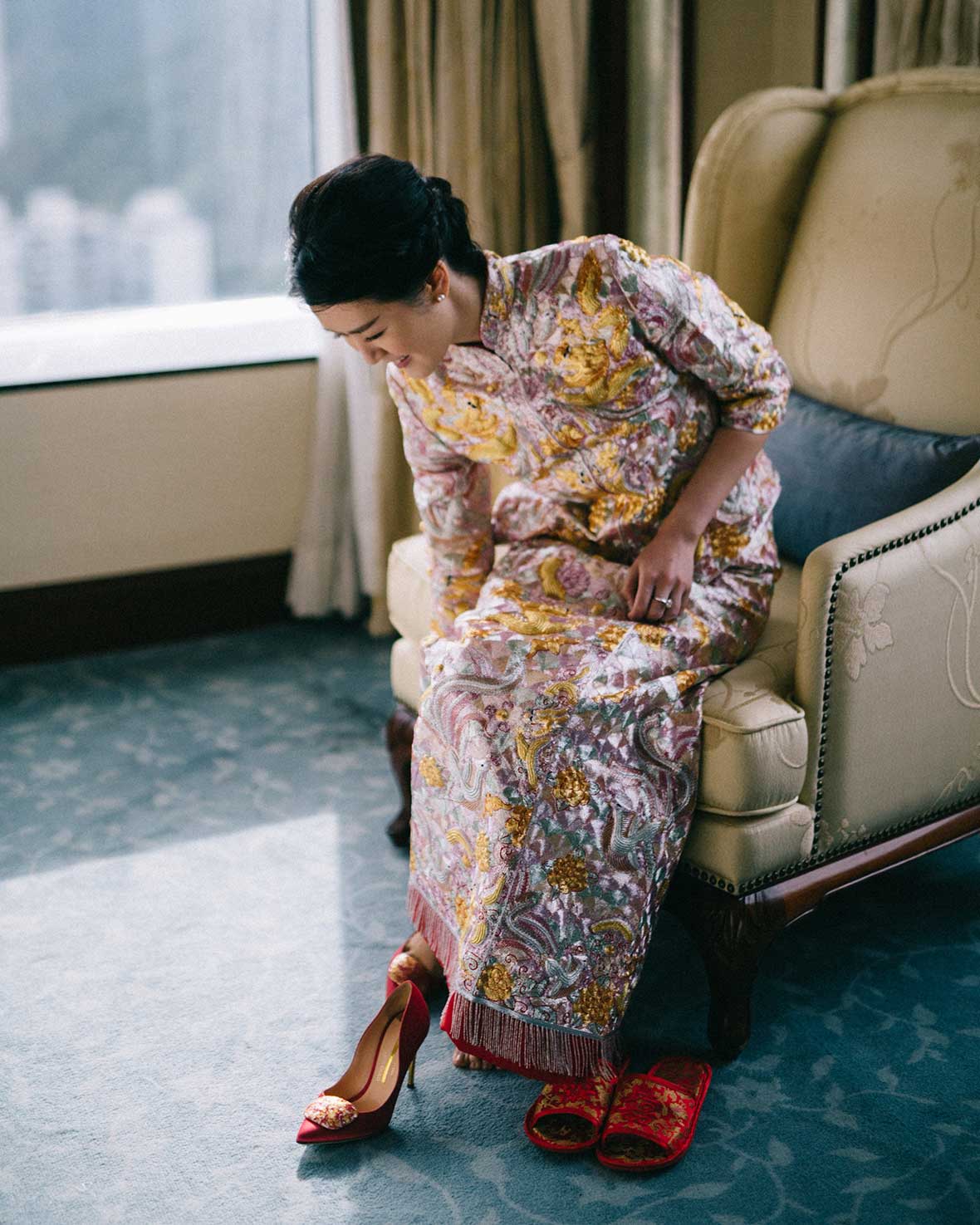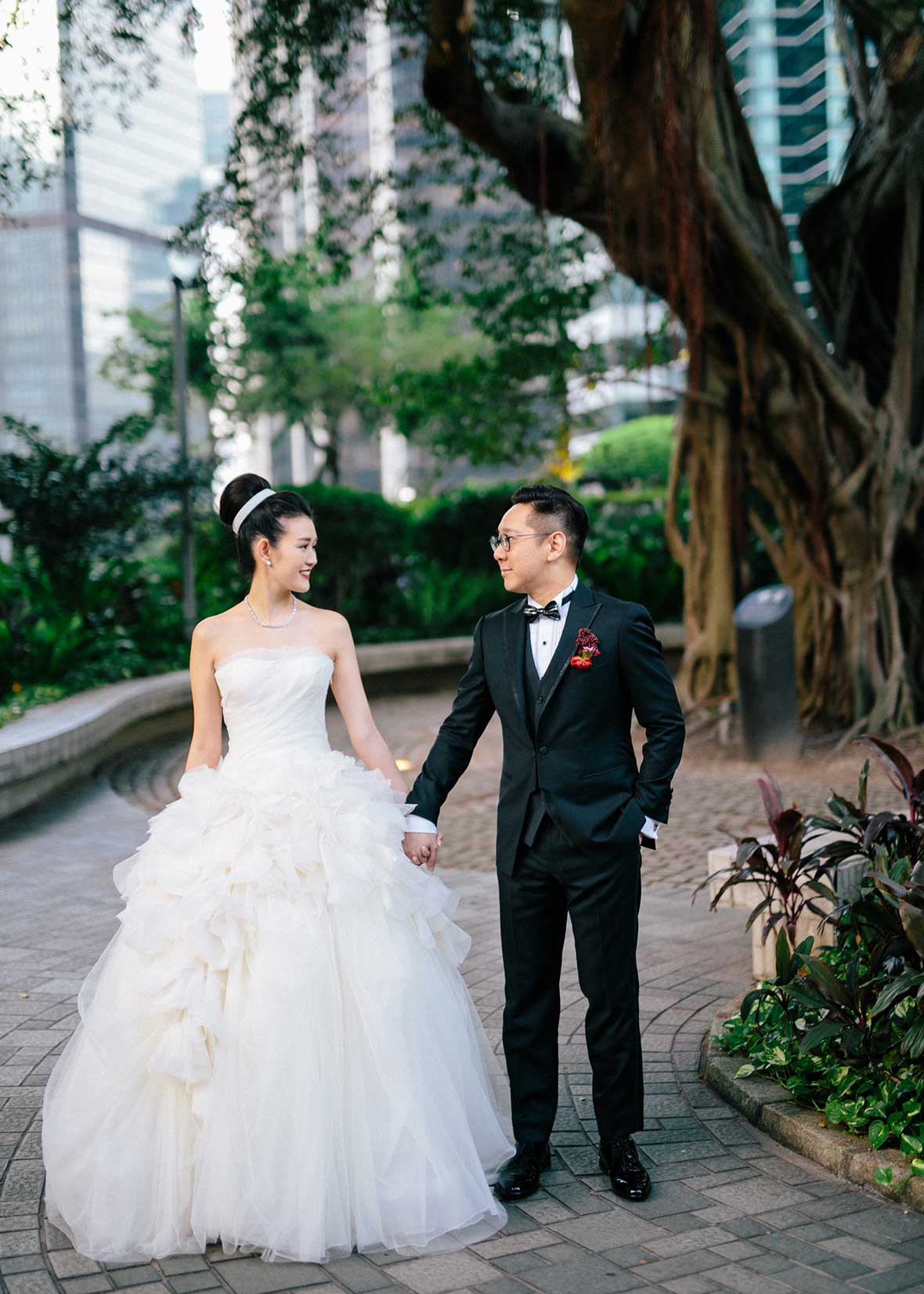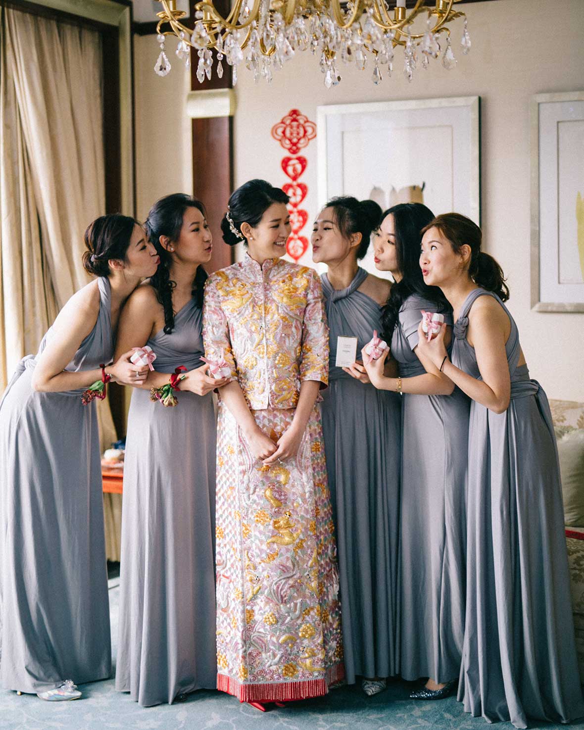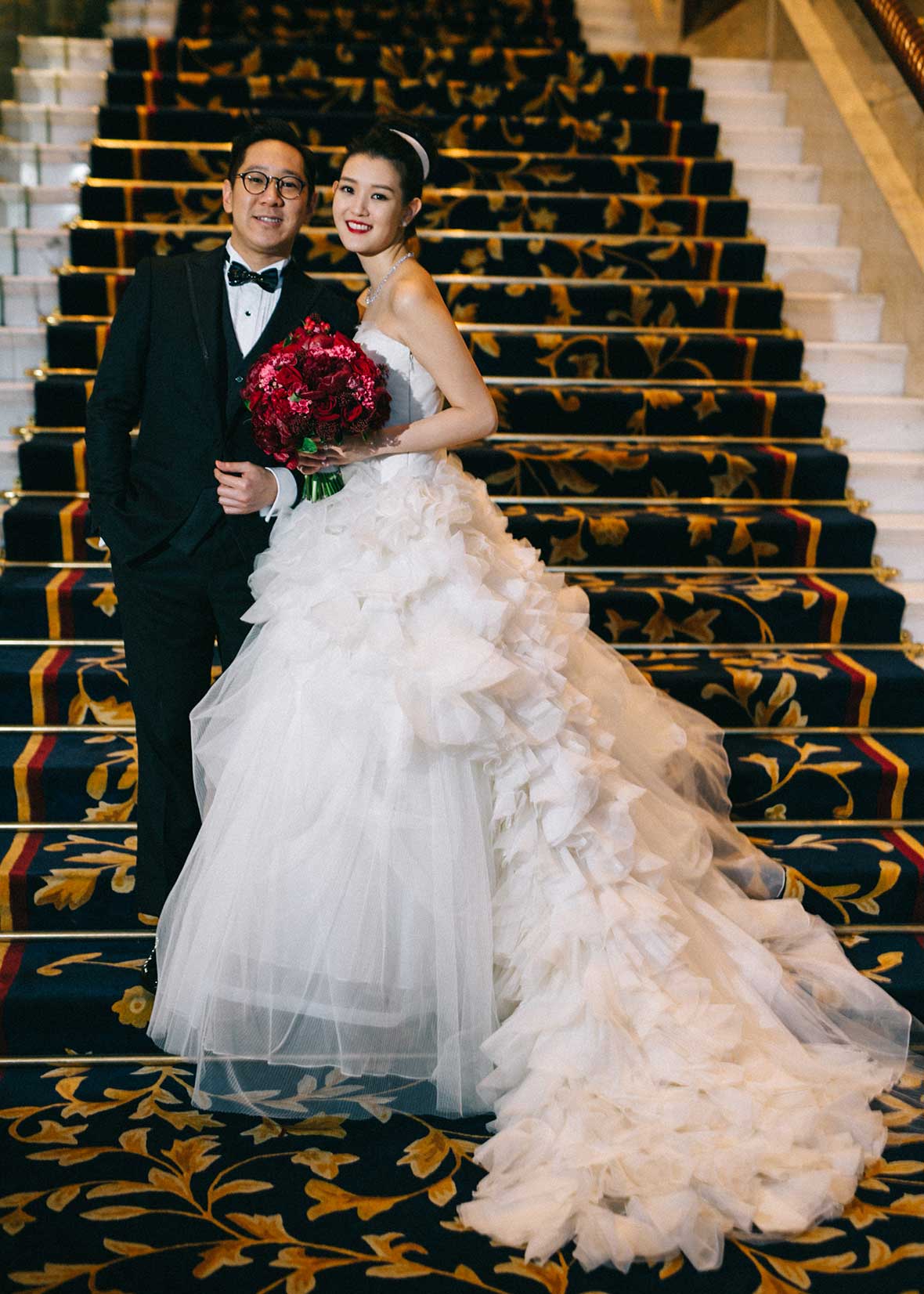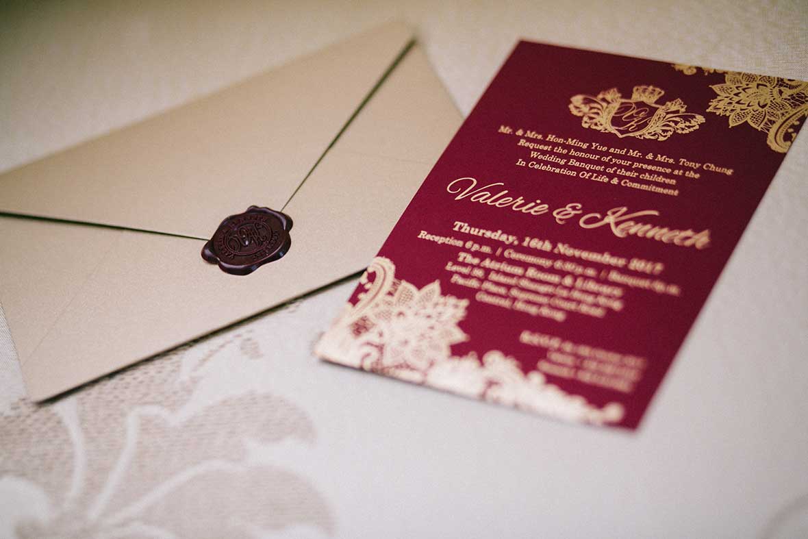 Photographer and Videographer: Patrick Photography / Ceremony and Reception Venue: Island Shangri La, Hong Kong / Bride’s Dress: Vera Wang from Central Weddings (main gown), Jenny Packham (second dress and red gown), Koon Nam Wah (Chinese traditional dress) / Bridesmaid Dresses: Rania Hatoum / Groom’s Attire: Tuxee / Makeup Artist: Angus Lee / Bouquets and Flowers: Liana Floral Couture / Decorations: Only Mine / Accessories: Lane’s Bridal