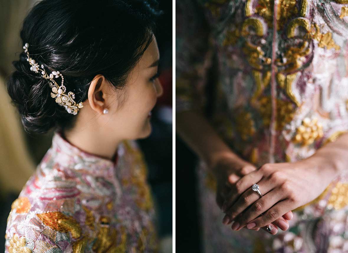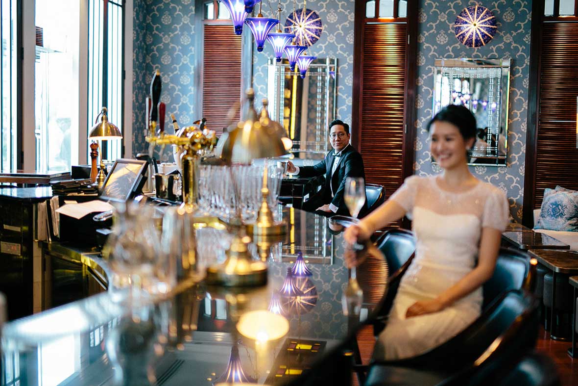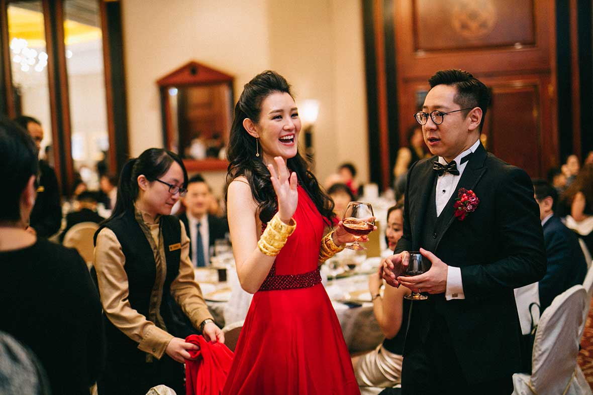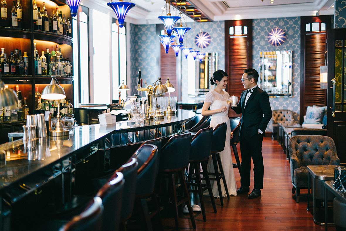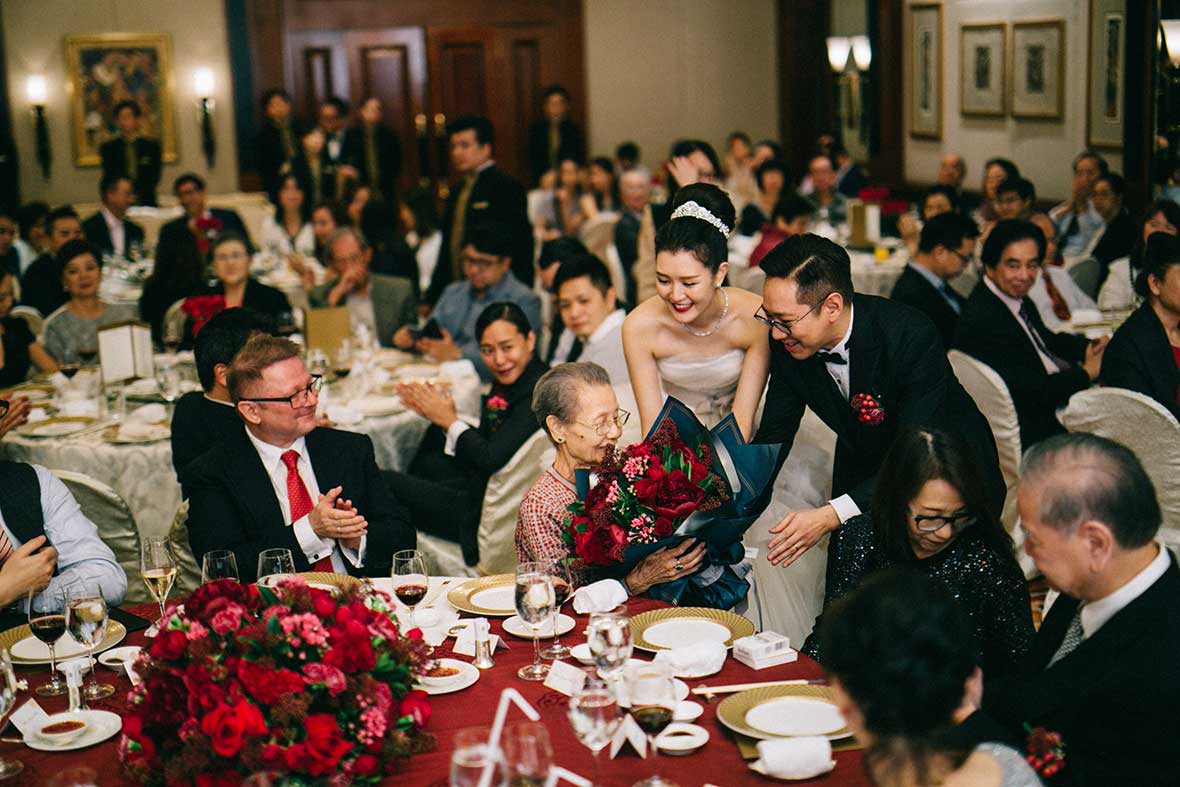 The wedding started off with a beautiful stretch of weather, Valerie dressed up in her shimmering gold Cheongsam and the couple served tea to their parents and their seniors. Then, they decided to take it back to where it all began by returning to the bar for a lovely shoot. It surely created memories that they would keep for a lifetime.