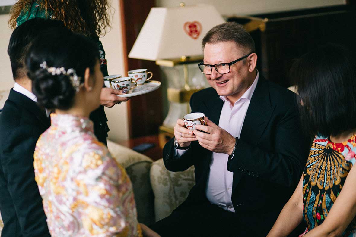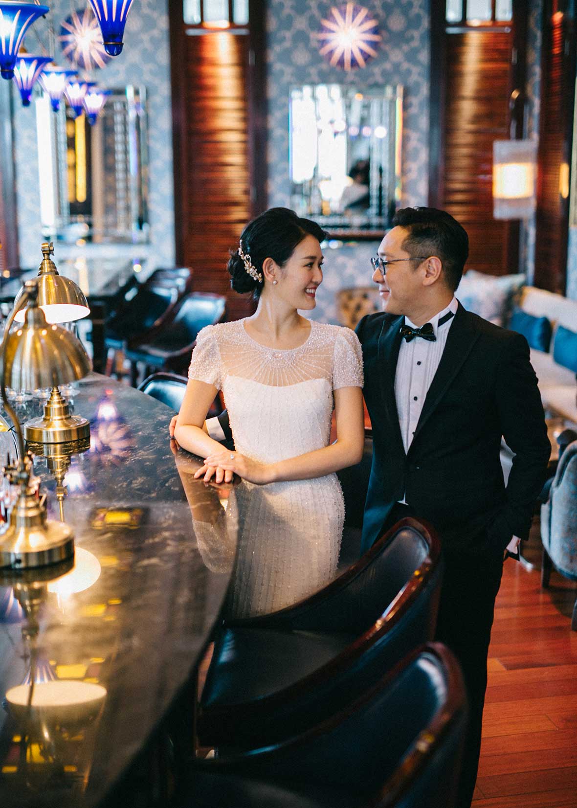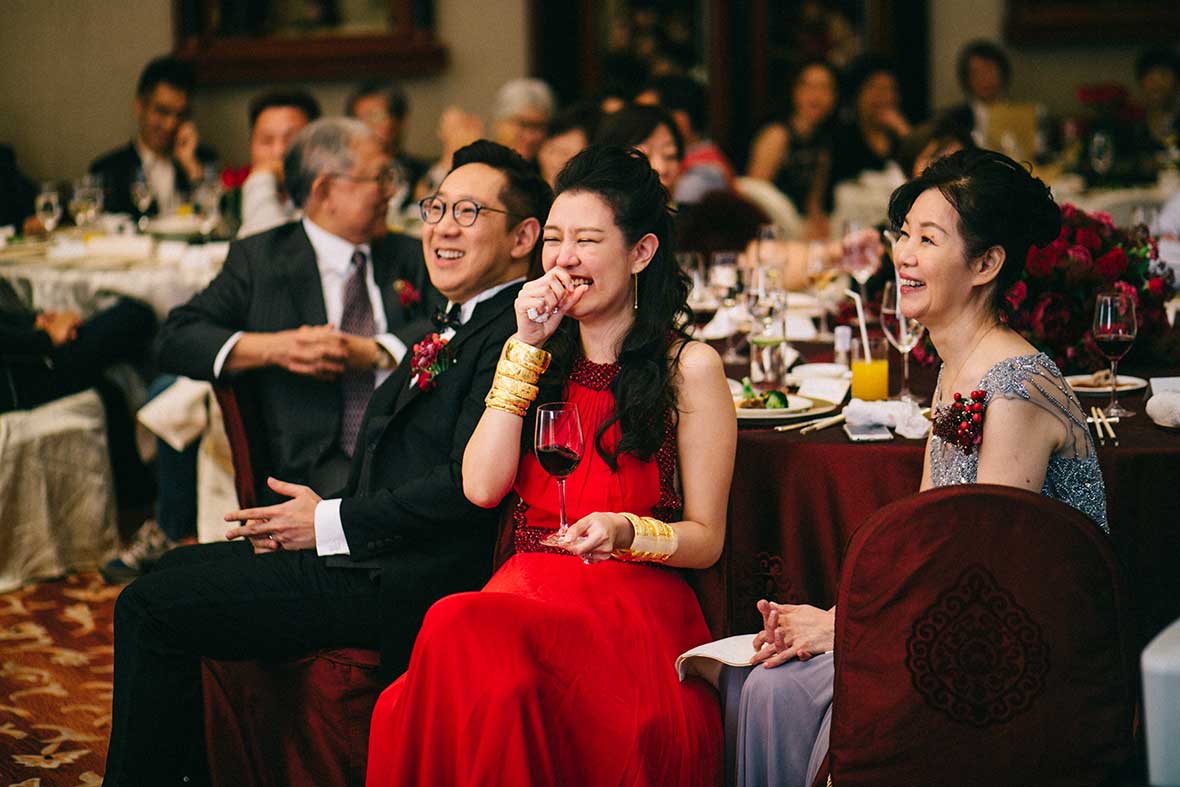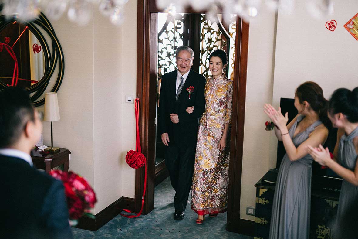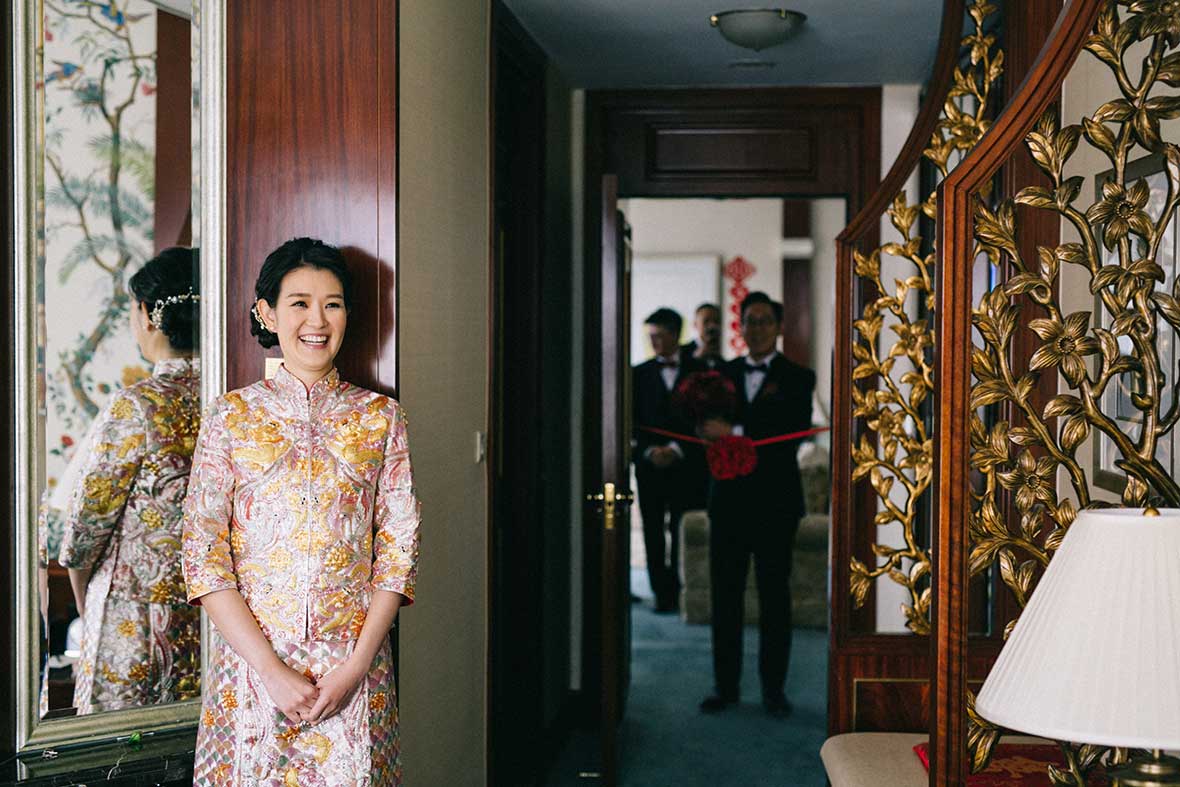 The wedding started off with a beautiful stretch of weather, Valerie dressed up in her shimmering gold Cheongsam and the couple served tea to their parents and their seniors. Then, they decided to take it back to where it all began by returning to the bar for a lovely shoot. It surely created memories that they would keep for a lifetime.
