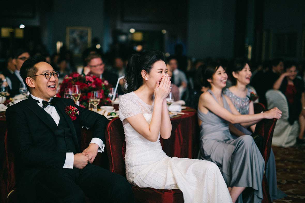 The bride glowed in her Vera Wang gown for the ceremony and stunning Jenny Packham dress for the reception. The red-and-gray theme was ideal for an elegant wedding, and this intimate wedding ceremony was sweet, simple, and so full of love. Smiles and laughter covered the banquet. Those heartfelt moments made the wedding an unforgettable one. It was a pleasure to capture every moment of laughter, every tear and every little detail of the day.