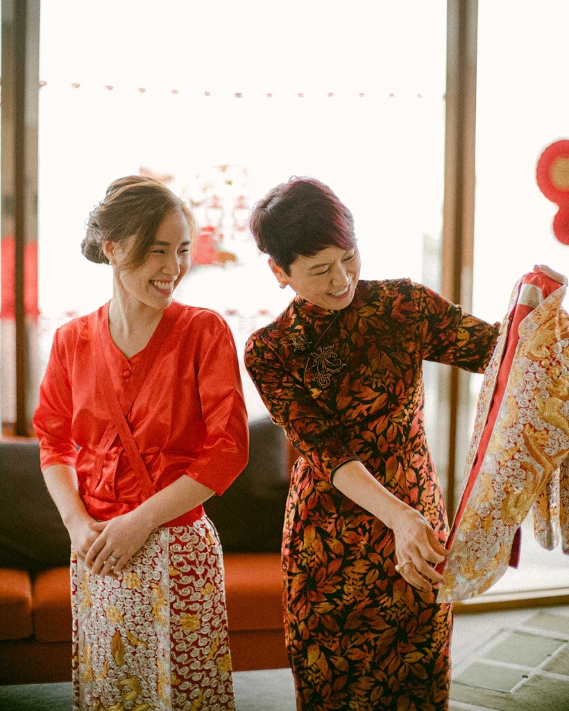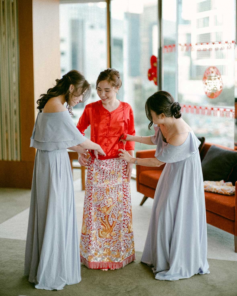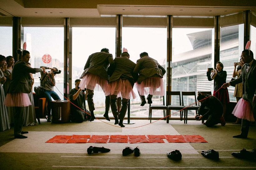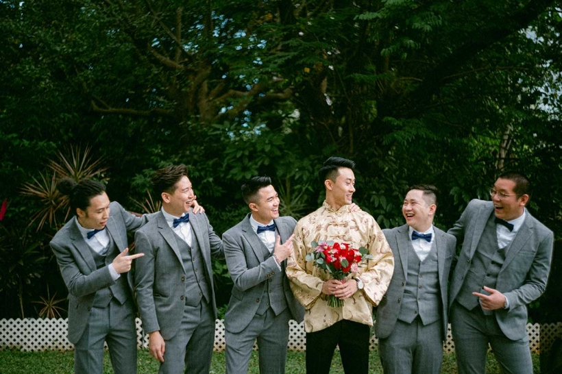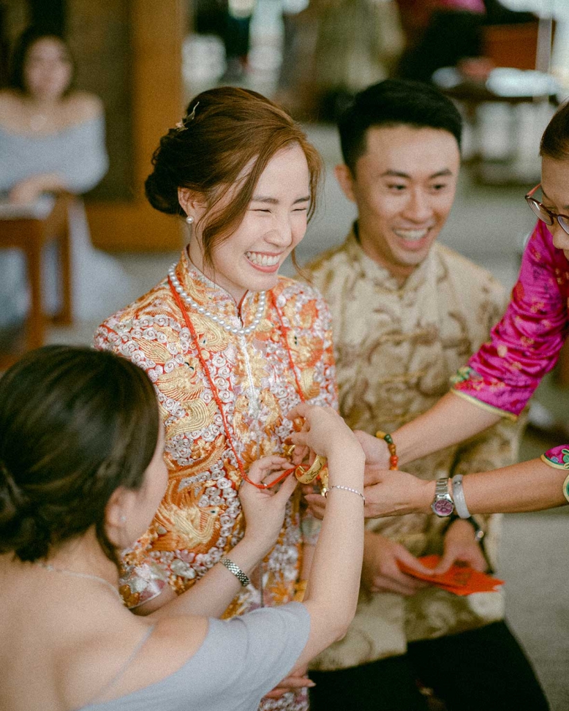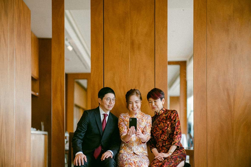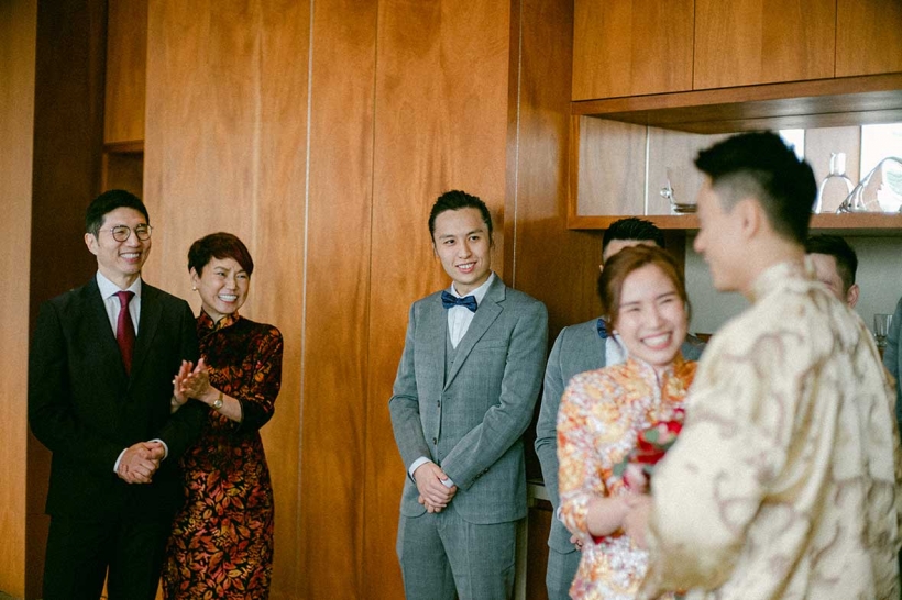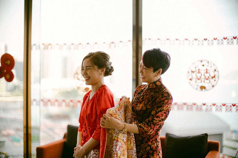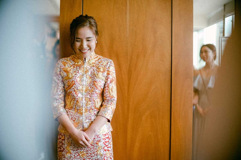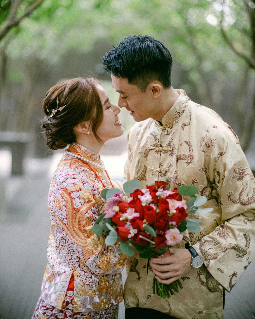 For Jay and Michelle, they started their wedding day getting ready for their tea ceremony at the luxury hotel, Grand Hyatt, in Hong Kong. With a bouquet of flowers in her hand, Michelle wore a qun kua with gold and white detailing sewn onto bright red fabric; on her neck hung a row of golden bangles to signal the bride being welcomed into the family. Afterwards, the couple decided to go for a walk under the archway of trees at the outside area of the hotel, which was a wonderful spot for some photos. Hand in hand, Jay and Michelle enjoyed the soft midday light in each other’s loving company before heading to St. Margaret’s Church for the wedding ceremony.