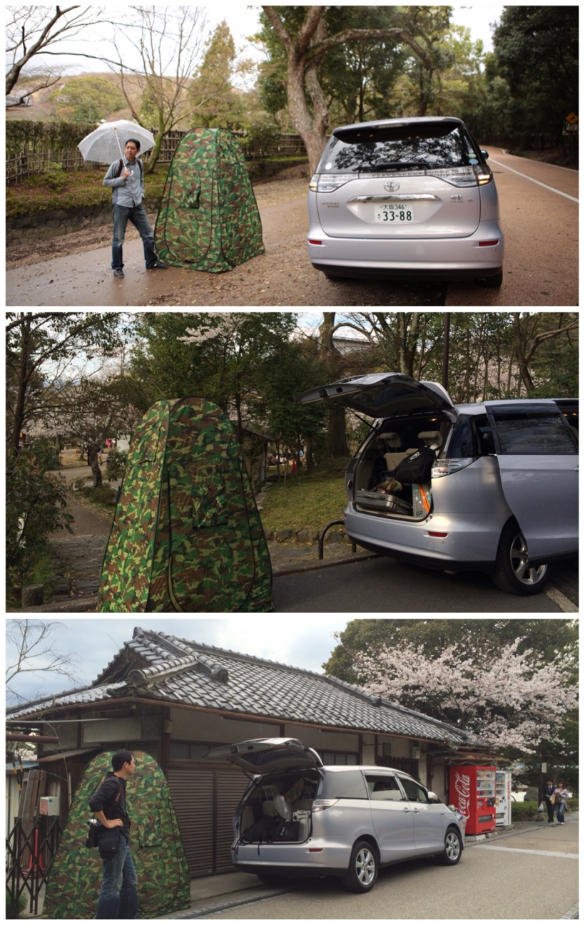 Can you believe that we brought along the changing tent to Kyoto? This makes it so much easier when the bride needs to change her wedding gown outdoors.