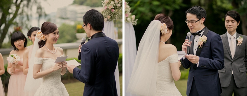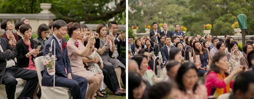 Apart from being in a rush, another obstacle on Yolanda and Simon’s big day is the weather, as their wedding ceremony was held outdoors. Even though many couples dream about having outdoor weddings with blue skies and the sun shining warmly, the weather is never predictable and this could be a hassle. It started raining that morning, and we were all worried about how the wedding would proceed in the afternoon. Luckily, the rain stopped soon after and even though the sky was still grey, it surely did not have an effect on the enthusiasm of the couple or their guests! The atmosphere was joyful and everyone had a great time, which I believe is the most important thing in every wedding.